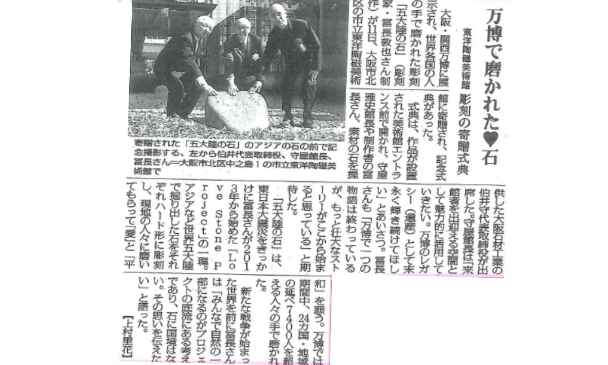 東大阪経済新聞に大阪・関西万博「LoveStoneProject」について掲載して頂きました。