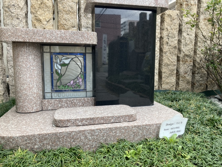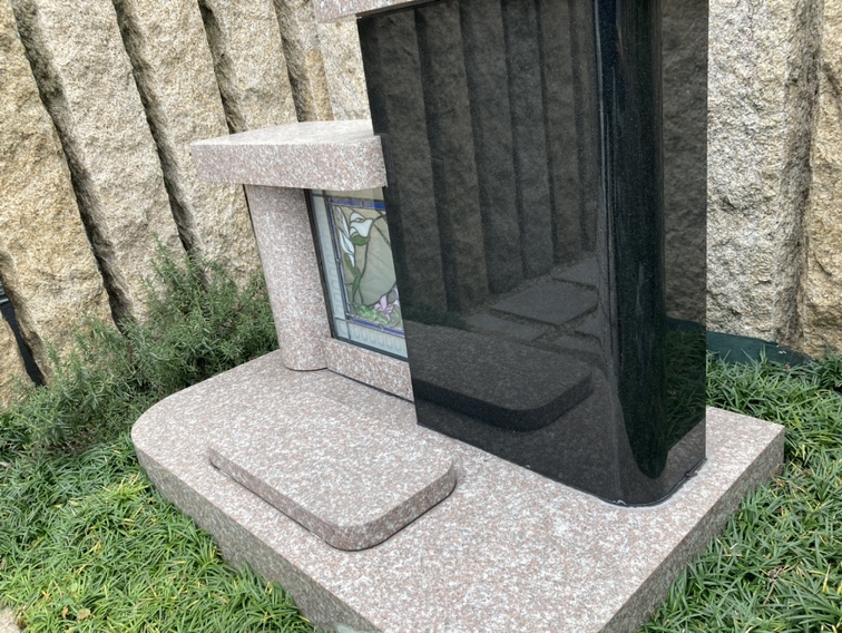 右側に「竿石(綽石)」と呼ばれる亡くなった方の霊魂が宿る部分を置き、左側にはステンドグラスなど、亡くなった方との思い出の品(絵)などを埋め込むことができます。