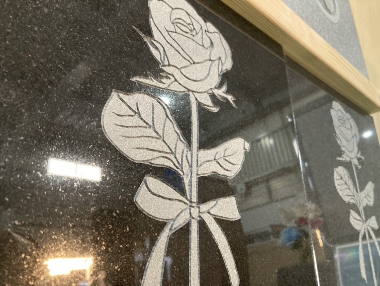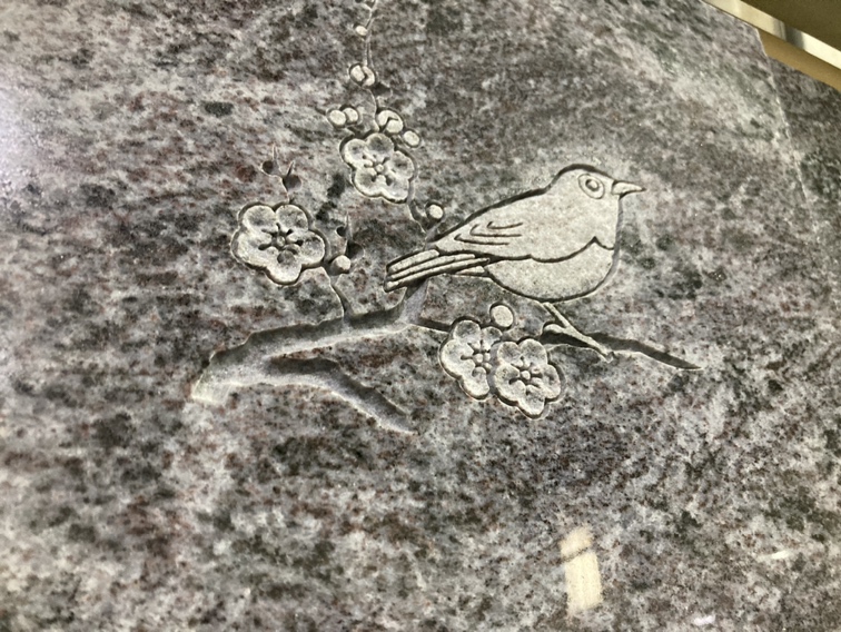 「ファントー二」とは、一般的なサンドブラスト彫刻よりもリアルに彫刻する技術のことで、墓石に植物や動物、生前ご愛用されていたバイクなどを彫刻させていただくこともございます。
