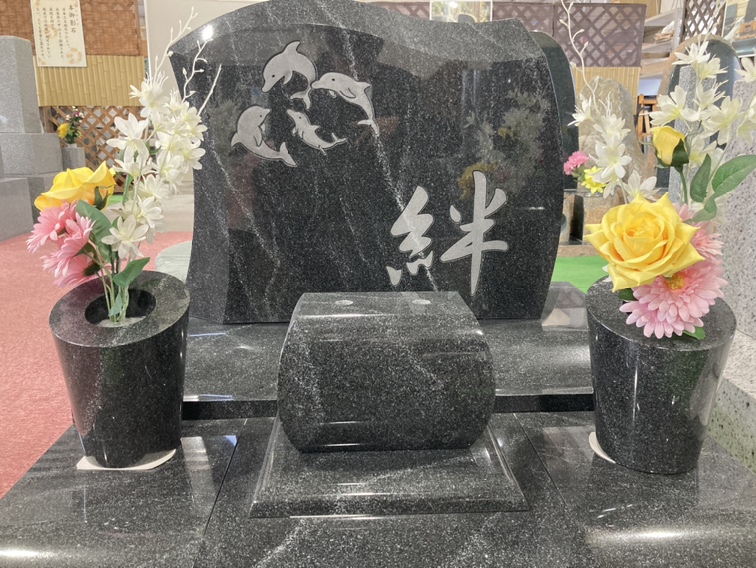 個性の強い墓石でありながらも、「ファントー二」などとよく調和し、華やかさと渋さを兼ね揃えるお墓に仕上がります。