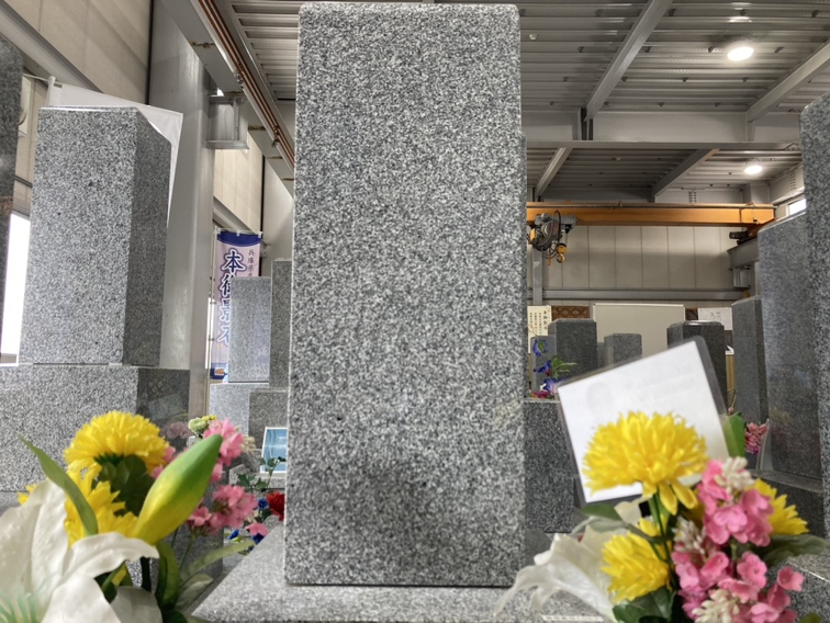 また、先日の現品紹介で墓石のグレードは「石目の細かさ」で識別されることが多いことをお話ししたと思うのですが、「新三葉石(しんさんこうせき)」は、「紀山石」や「滝根石」よりも石目が細かく、白っぽいので気品のある趣を感じさせます。