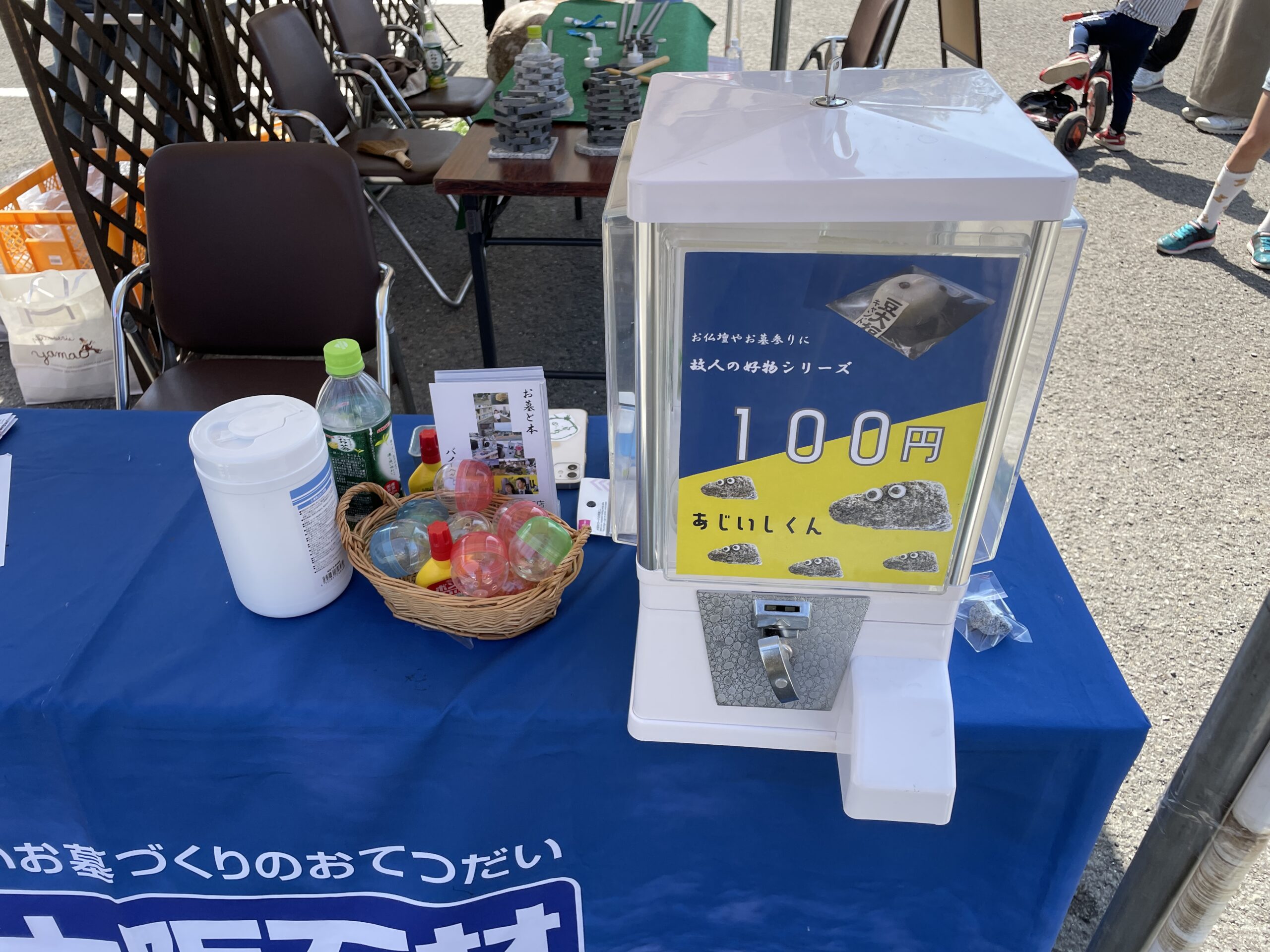大阪石材としては、「あじいし君ガチャ&石ランプ作り&石磨きワークショップ」という組み合わせでお店を出店させていただきました。
