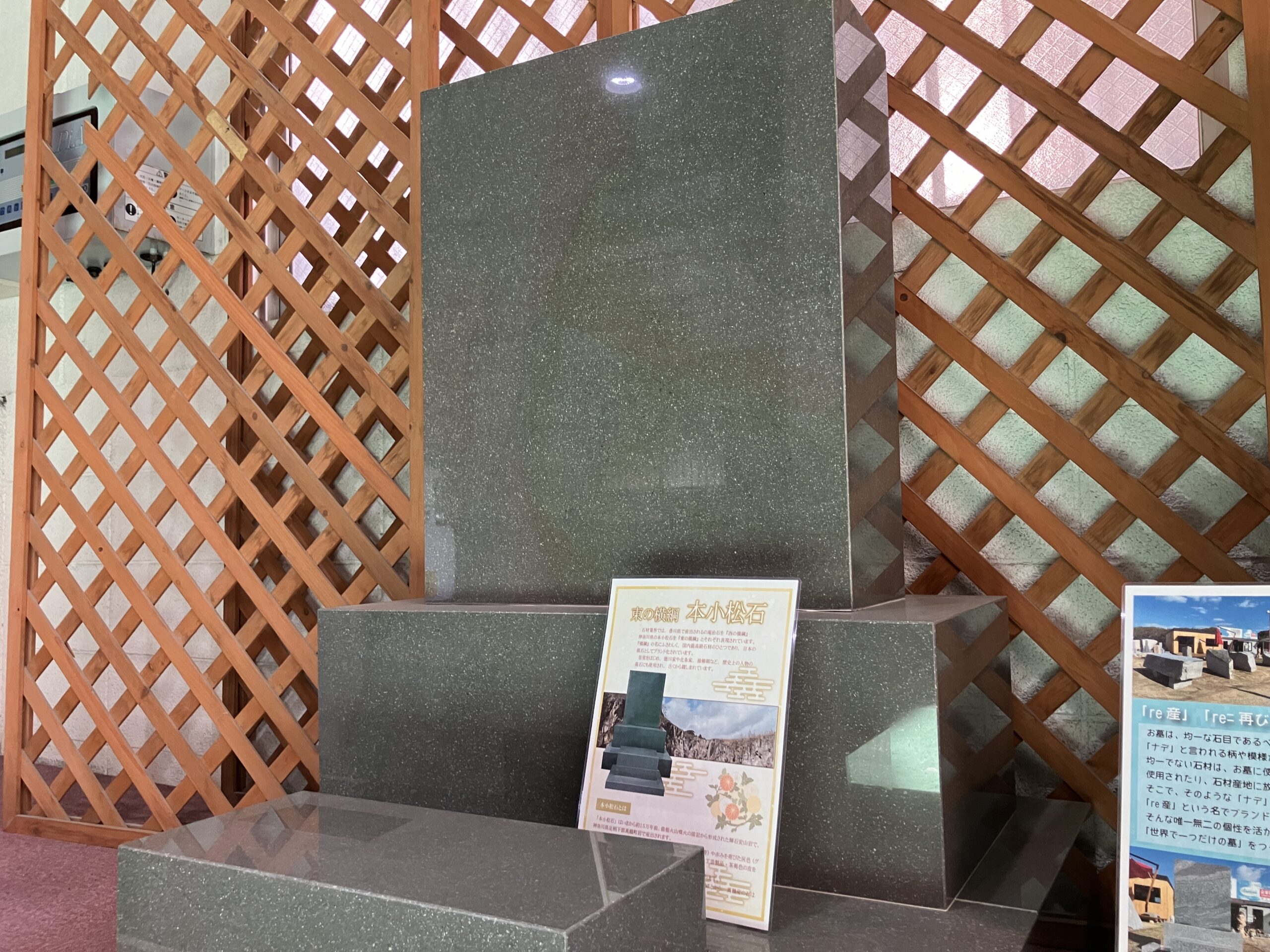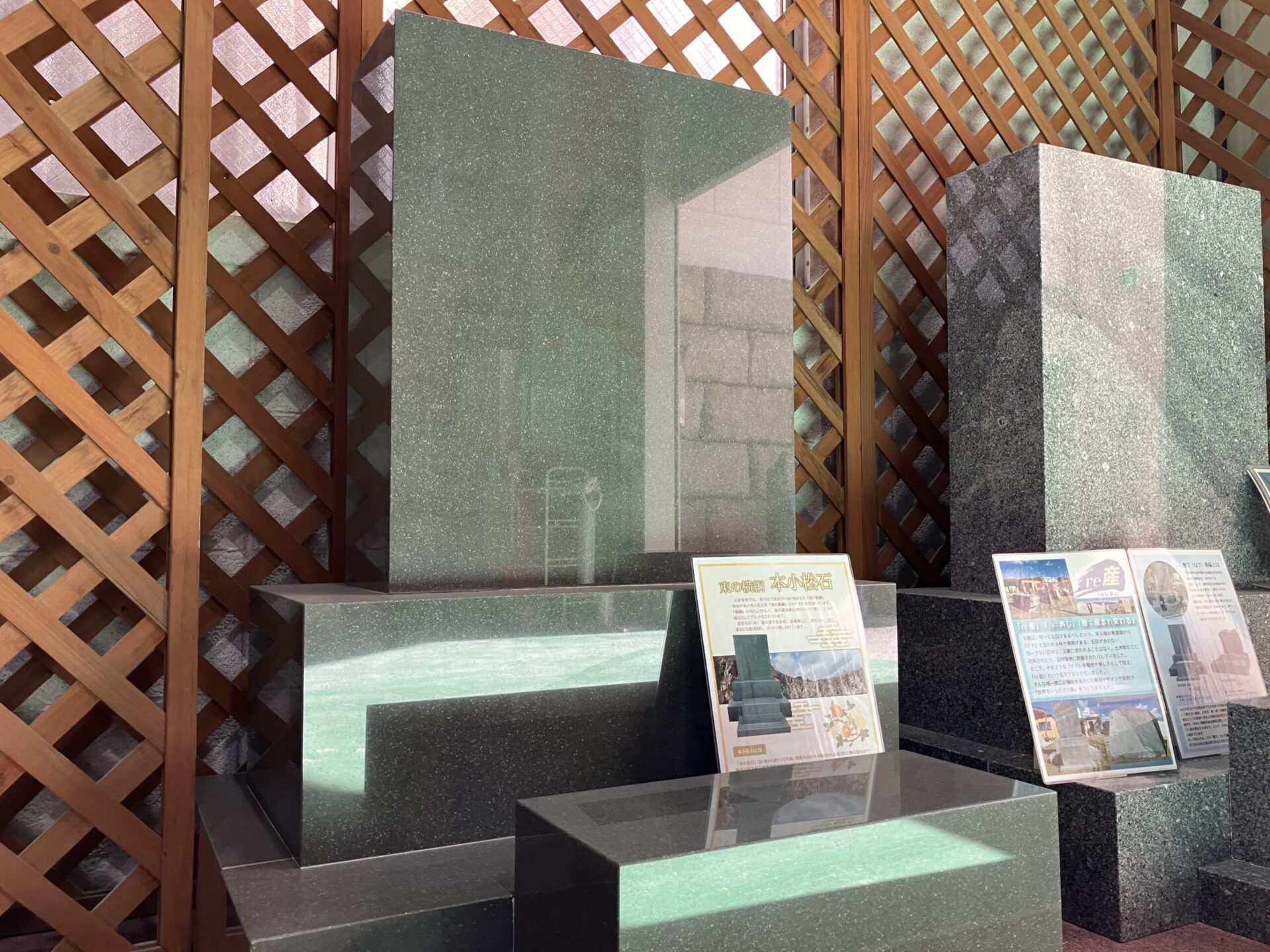 大阪石材は本社の3階に現品墓石を展示しているのですが、ご紹介した「本小松石」も実際に見学・予約・購入していただくことが可能です。