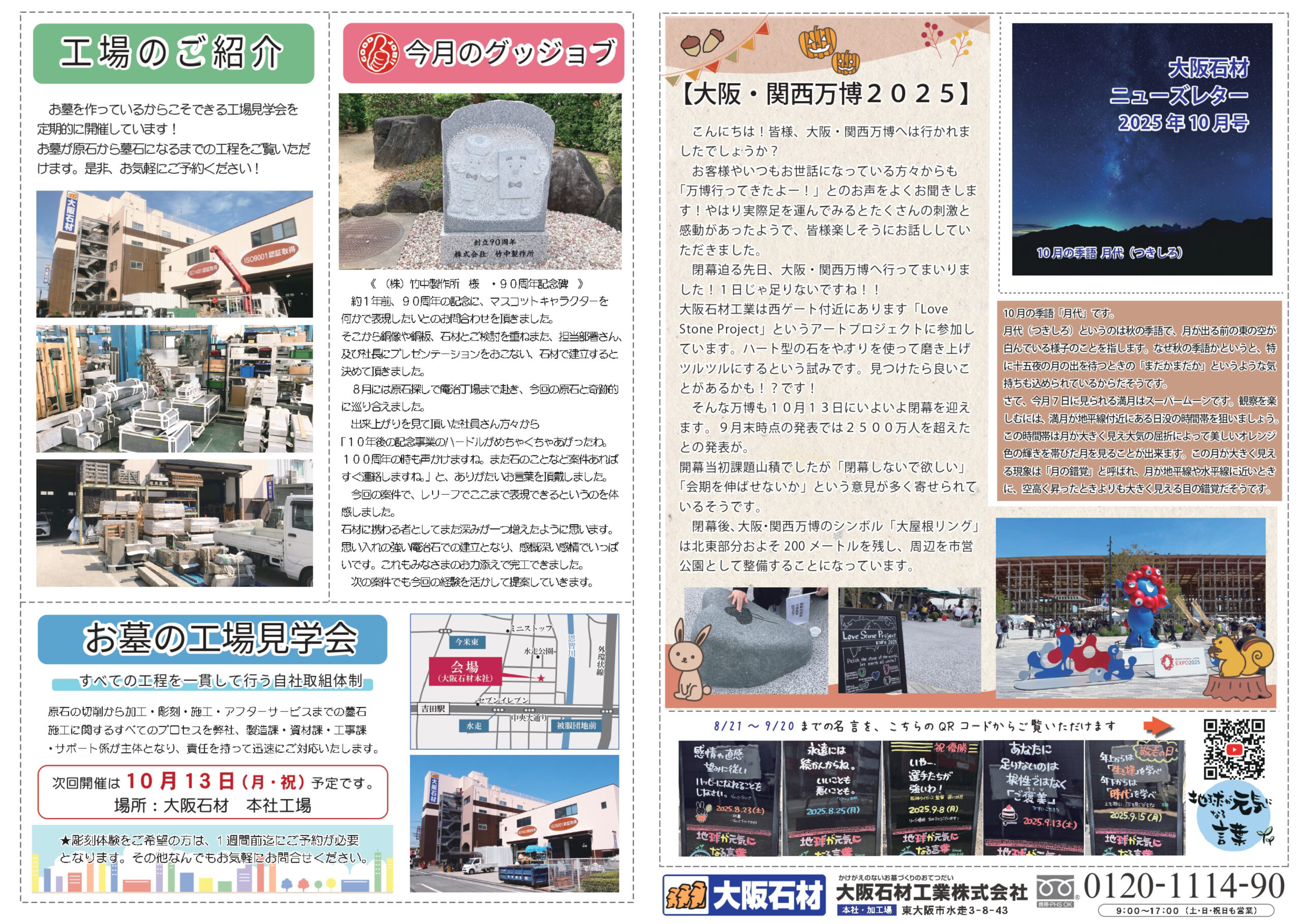 ニューズレター 2025年10月号 - 大阪石材|かけがえのないお墓づくりのお手伝い