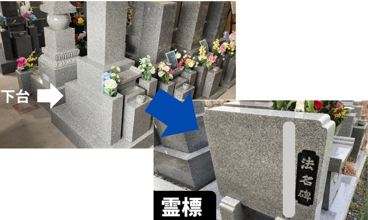・石碑の上部(仏石)は引き取り永年安置し、台石(お墓の一番下の石)を加工してお名前を刻む霊標(墓誌)を作成する。