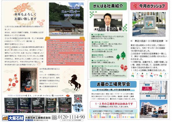 ニューズレター 2026年1月号 - 大阪石材|かけがえのないお墓づくりのお手伝い