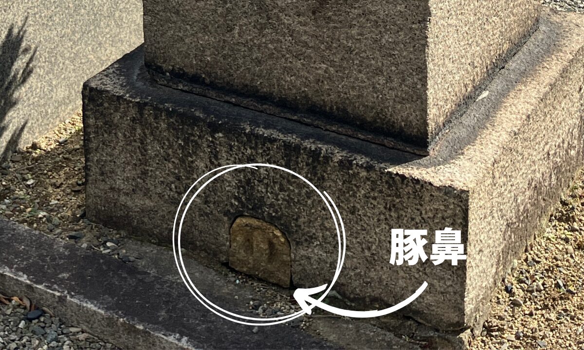 お墓が2基あり、当初左のお墓に納骨する予定で「豚鼻」と呼ばれる昔のお墓によくある納骨口もあったのですが外れなかったので、右側の五輪塔にご納骨させていただくことになりました。