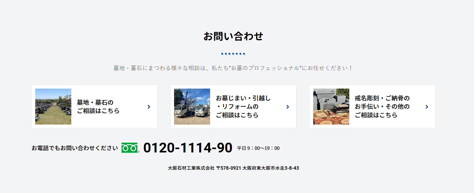 大阪石材にお問い合わせいただくことが多いサービスを3つのカテゴリに分類しております。