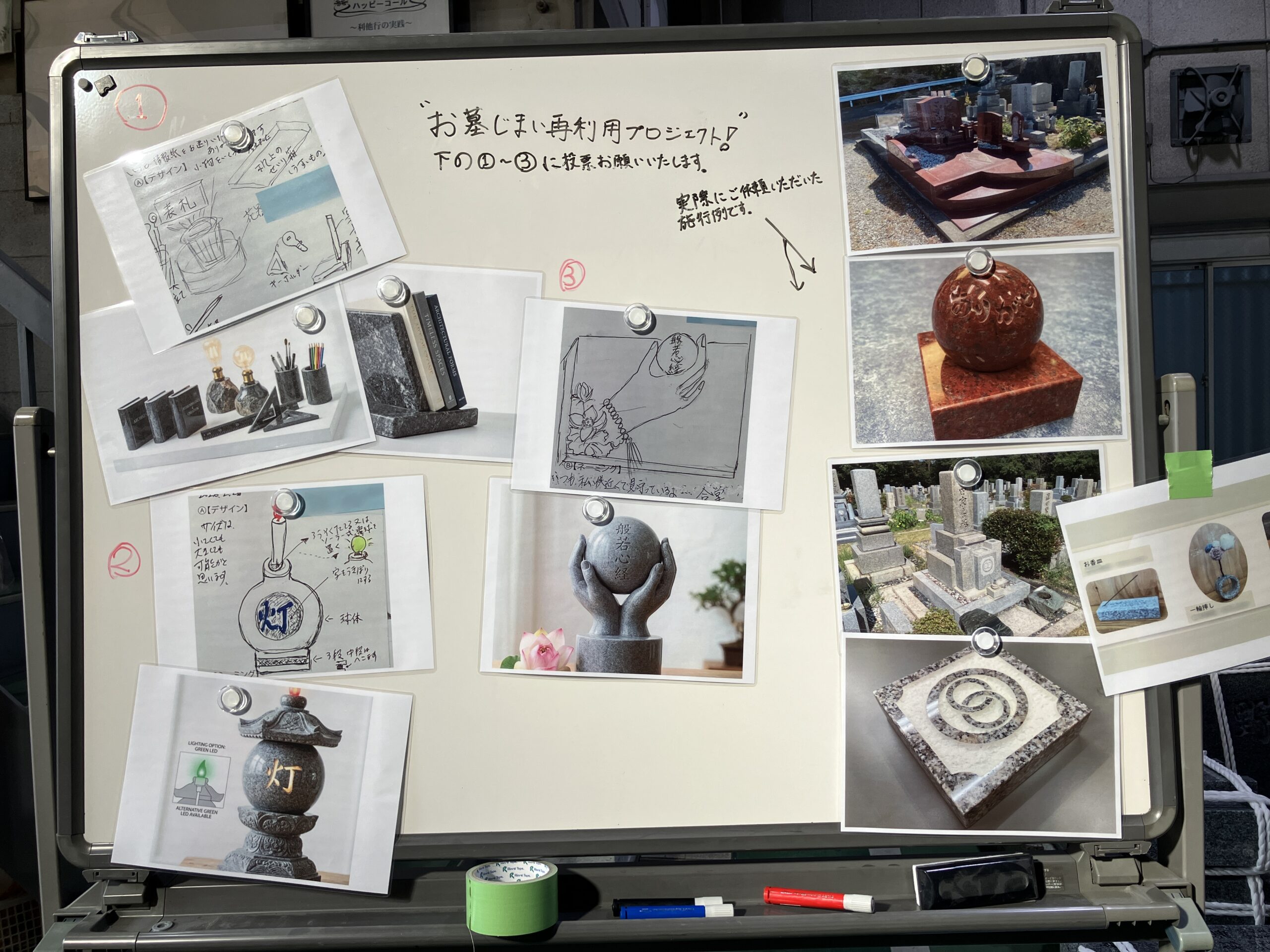 また今回は、年末年始に以前大阪石材でお手伝いさせていただいた方々に「お墓じまい後の再利用プロジェクト」の候補案を募らせていただき、そちらの投票も開催しております。