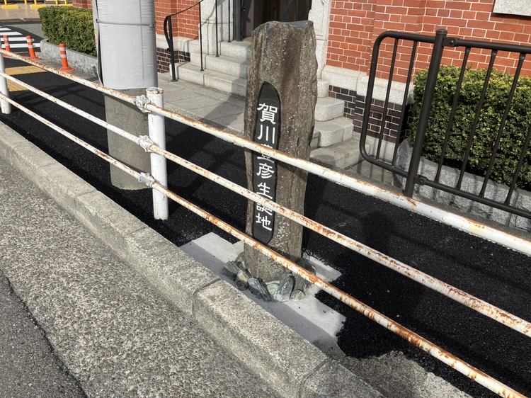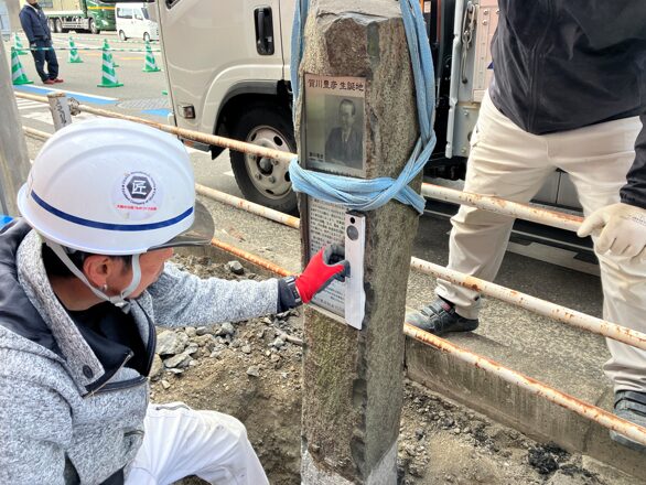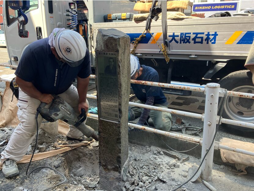 先日、神戸市兵庫区にある「賀川豊彦氏の記念碑」の解体・据付作業のお手伝いをさせていただきました。