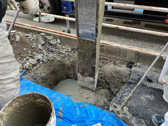 賀川氏の生誕の地が神戸市兵庫区であることからこちらの記念碑が据えられていたのですが、下の水道管工事の兼ね合いで一度解体しないといけなくなり、そちらを大阪石材にお任せいただけることとなりました。