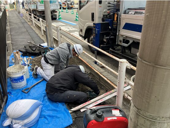 据付時は、水道に当たらないように水道工事の業者さんにお手伝いいただきながら施工させていただきました。