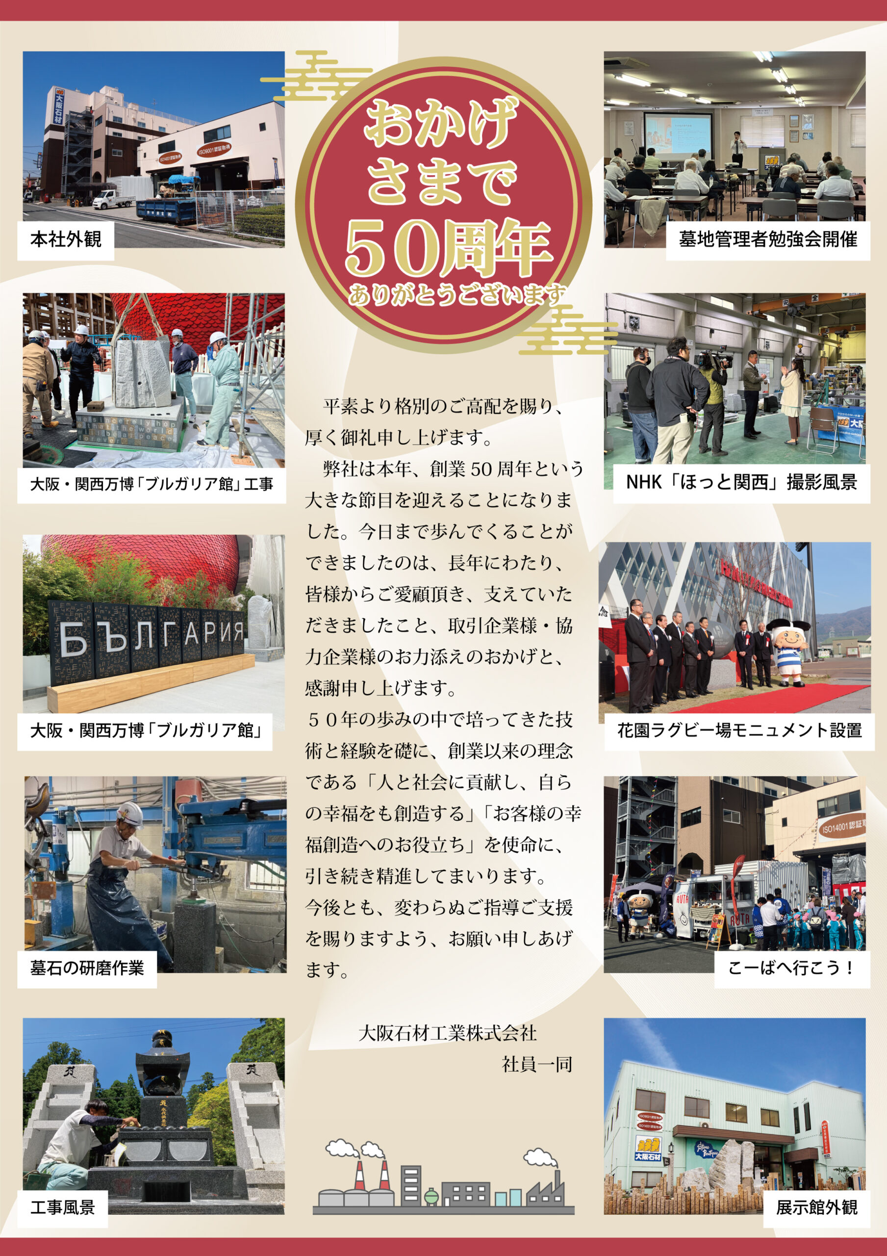 【50周年記念】大阪石材は本年で「創業50周年」になりました!|大阪石材の取り組み内容などをご紹介 - 大阪石材|かけがえのないお墓づくりのお手伝い