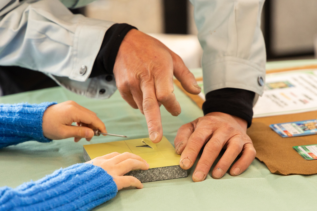 中でも「彫刻体験」が非常に人気で、好きな文字や形を職人と同じ手法・技術を使って彫れるので目的にされる方も多いです。