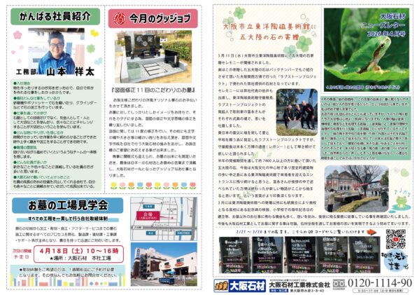 ニューズレター 2026年4月号 - 大阪石材|かけがえのないお墓づくりのお手伝い