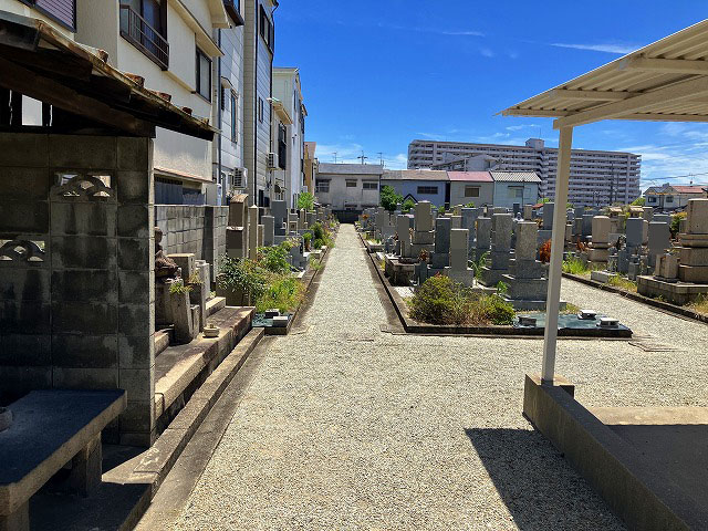 地域の皆様でお守りされている街中にある共同墓地です。阪急「新伊丹」駅から徒歩約9分の好立地、とてもお参りしやすい墓地です。