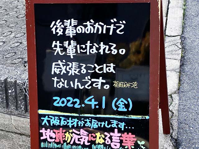 神戸の墓石店「地球が元気になる言葉」2022年4月1日