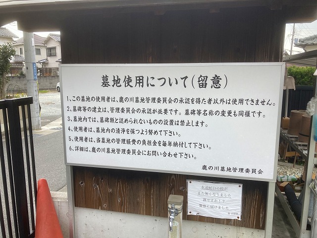 1、この墓地の使用者は、鹿の川墓地管理委員会の承認を得た者以外は使用できません。