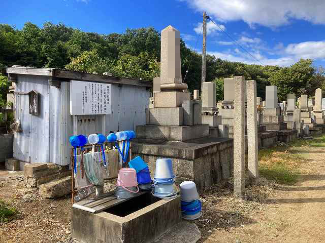 細江浜砂墓地(姫路市)の水場と用具置き場