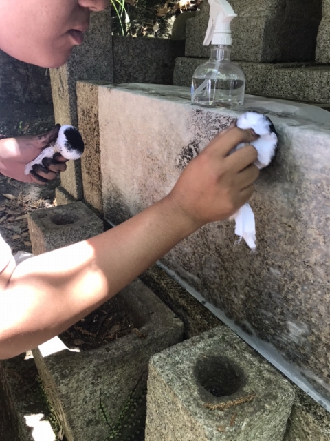 お手製道具で湿拓に挑む(再度山の大龍寺さん) - 大阪石材|かけがえのないお墓づくりのお手伝い