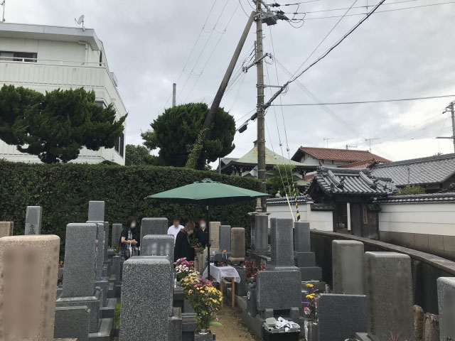 神戸支店を出発した頃は豪雨で心配しておりましたが、明石に入った頃から小雨になりました。墓地に着いた頃には雨は上がり、お式中も雨も降らずで、無事に終わり良かったです。