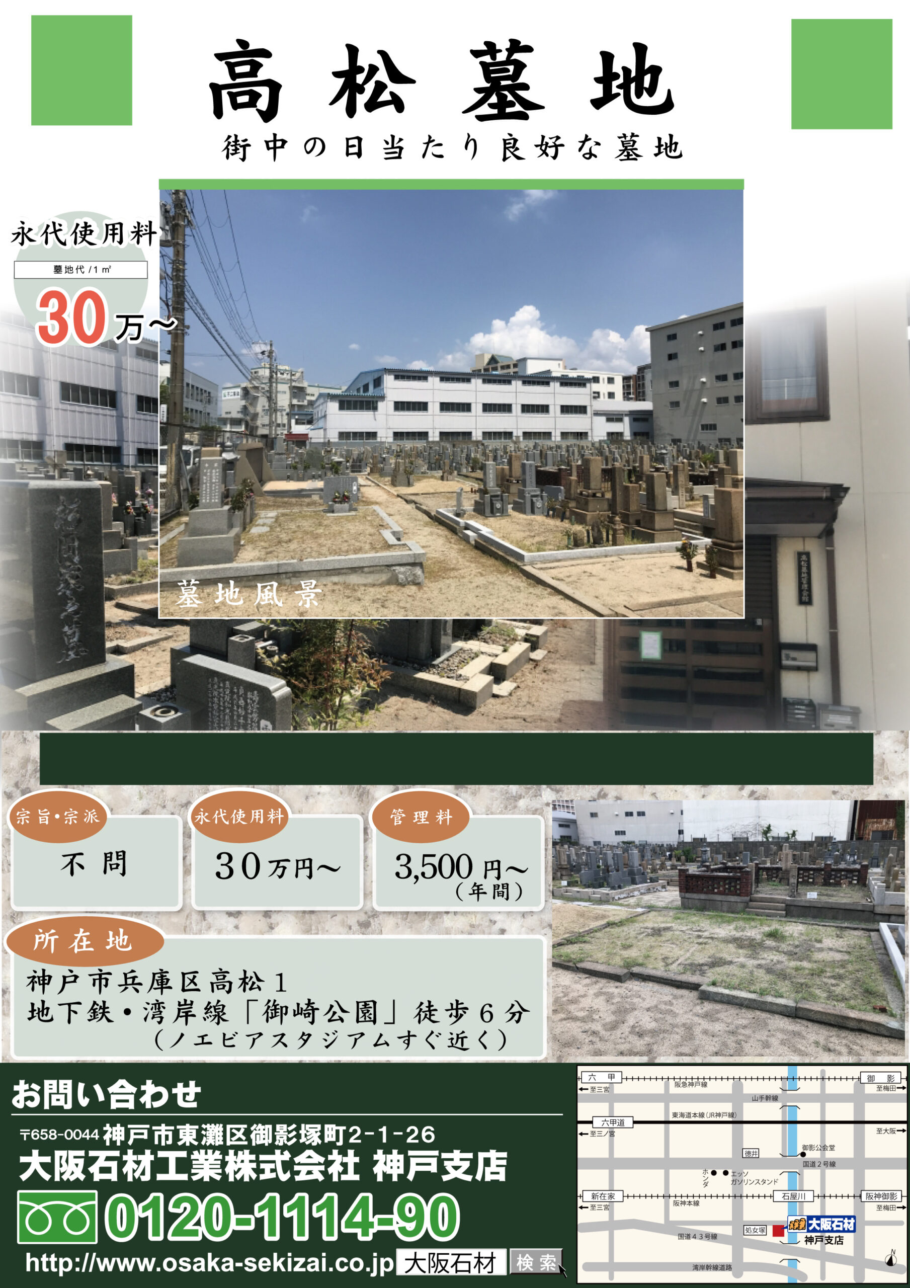 【指定石材店監修】高松墓地(神戸市兵庫区)の完全ガイド|アクセス・永代使用料・空き区画のご紹介 - 大阪石材|かけがえのないお墓づくりのお手伝い