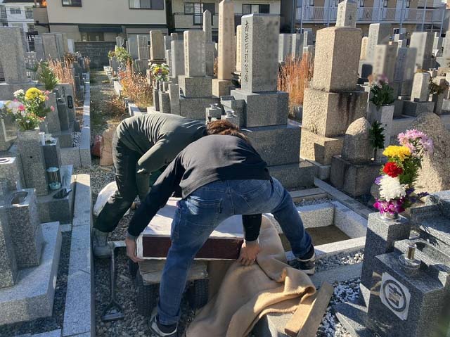 若草霊園(尼崎市)でお墓の工事です|お墓・霊園 - 大阪石材|かけがえのないお墓づくりのお手伝い