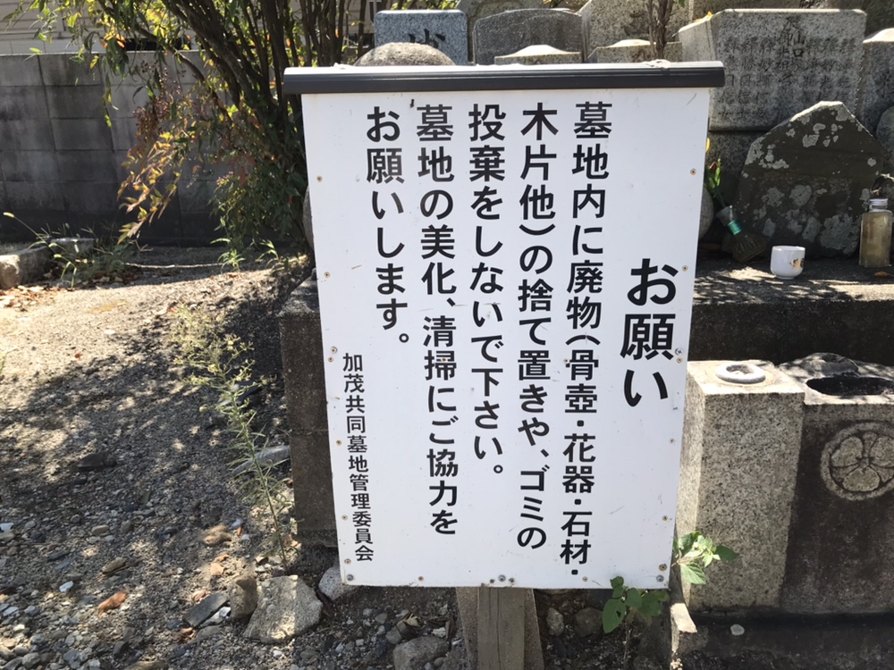 加茂共同墓地(川西市)の美化看板