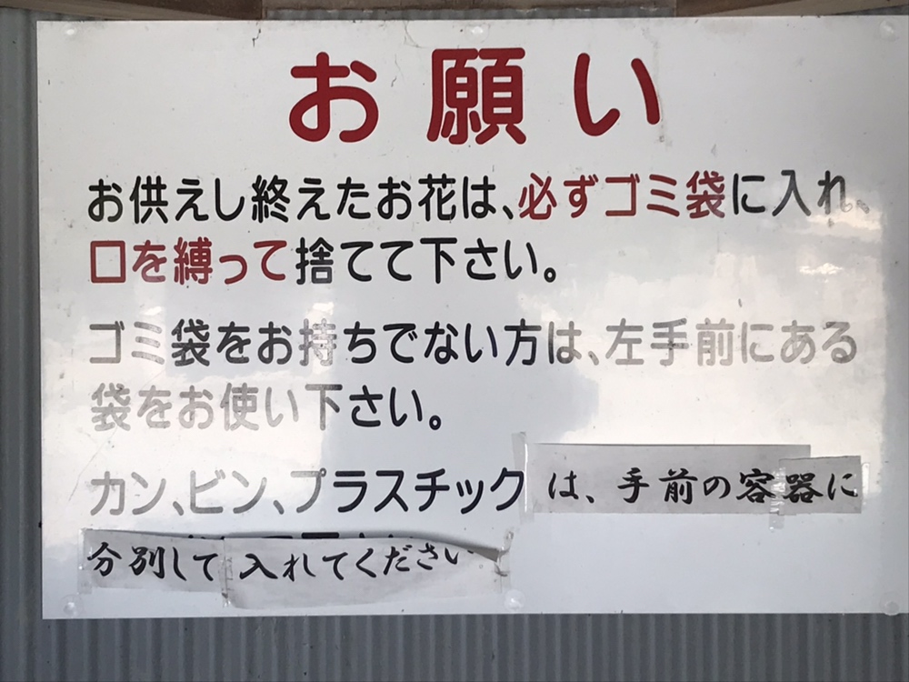 お供えし終えたお花は、必ずゴミ袋に入れ、口を縛って捨ててください。