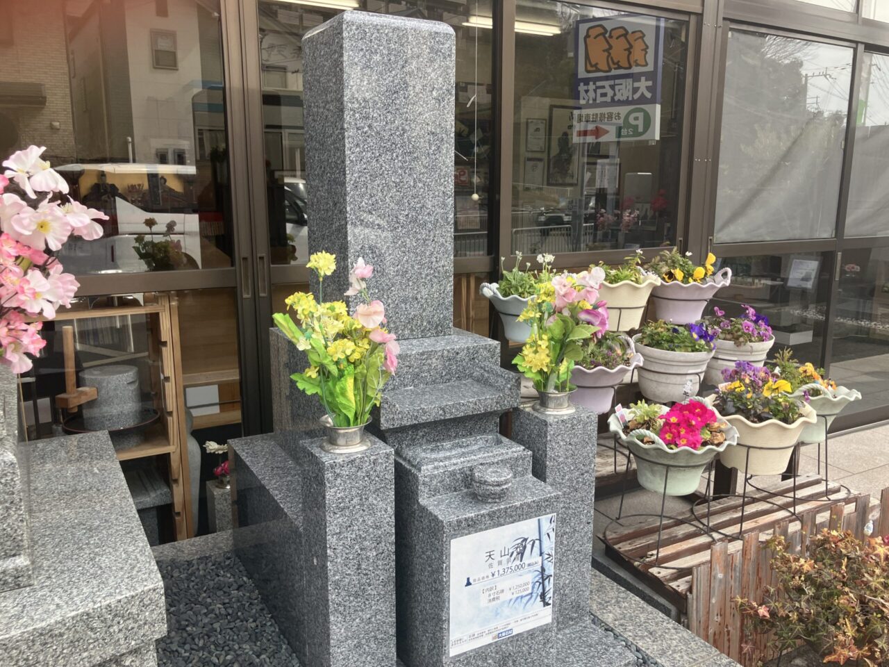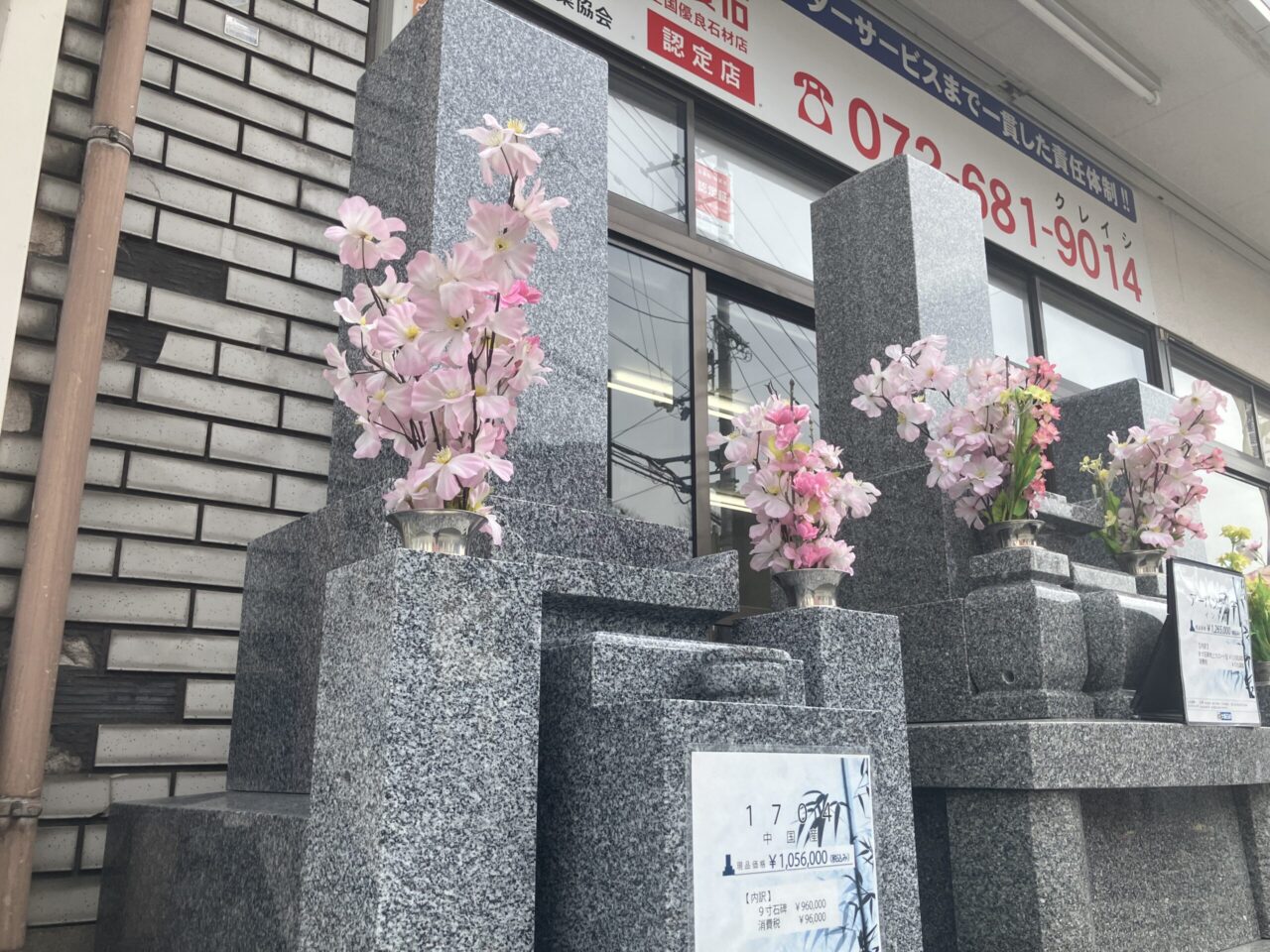 大阪石材は東大阪にある本社以外にも7箇所の拠点があり、ほとんどの店舗で墓石の現品を展示しているのですが、今回は高槻店の現品墓石をご紹介させていただきます。