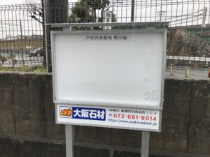 大阪石材としても20年以上前からお仕事をさせていただいており、墓地内には大阪石材の看板がついた掲示板・ベンチを寄贈させていただきました。