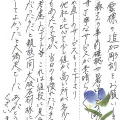 津田霊苑で文字の彫刻をさせていただきました(谷脇様)