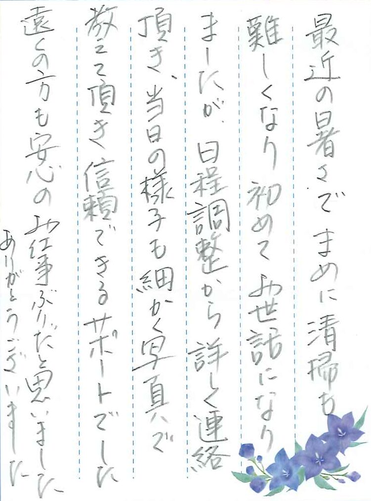 遠くの方も安心のお仕事ぶりだと思いました。ありがとうございました。