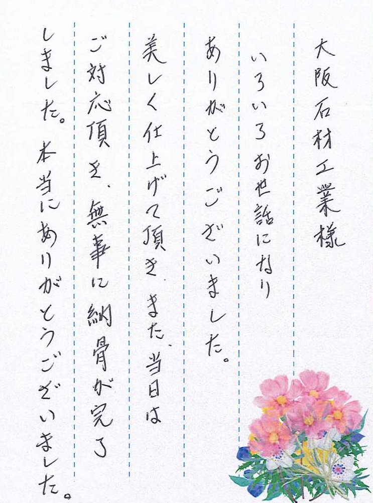 美しく仕上げて頂き、また、当日はご対応頂き、無事に納骨が完了しました。