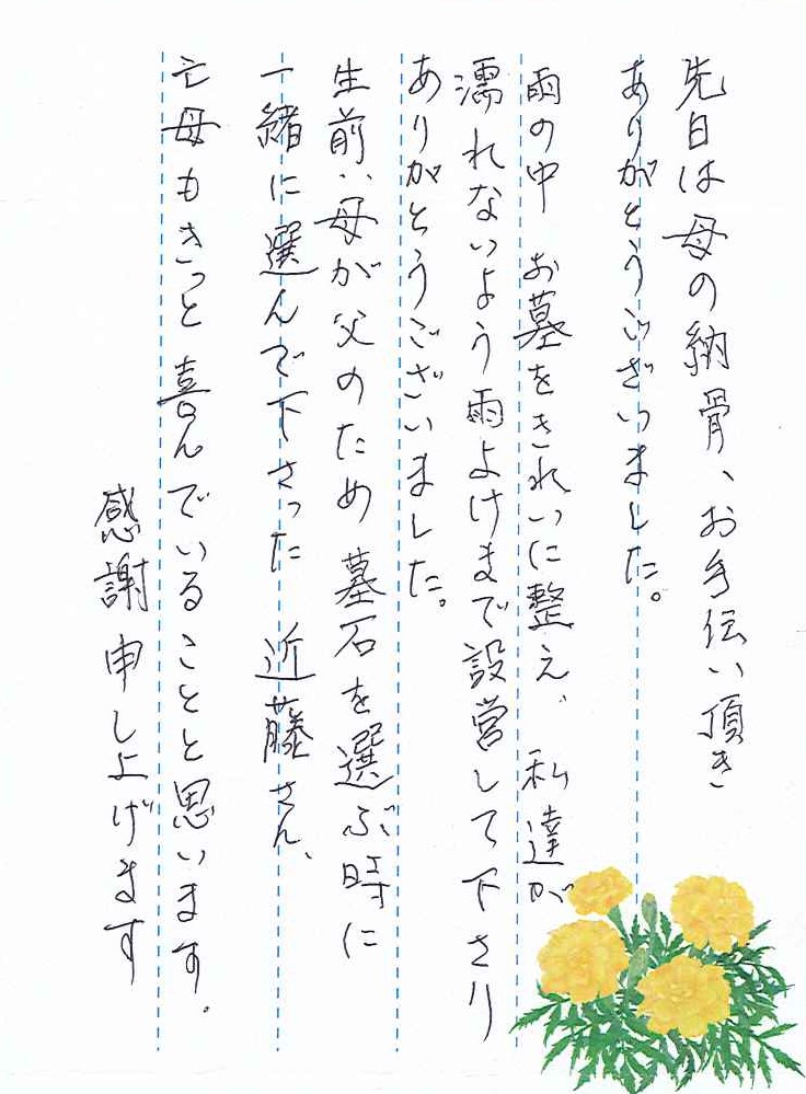 先日は母の納骨、お手伝い頂きありがとうございました。