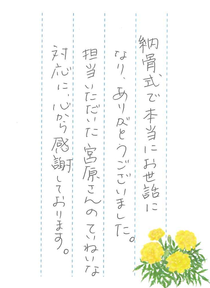 担当いただいた宮原さんのていないな対応に、心から感謝しております。