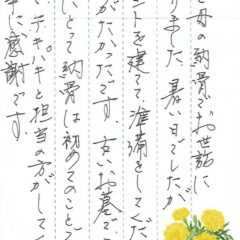 印田墓地で納骨のお手伝いをさせていただきました(交久瀬様) - 大阪石材|かけがえのないお墓づくりのお手伝い