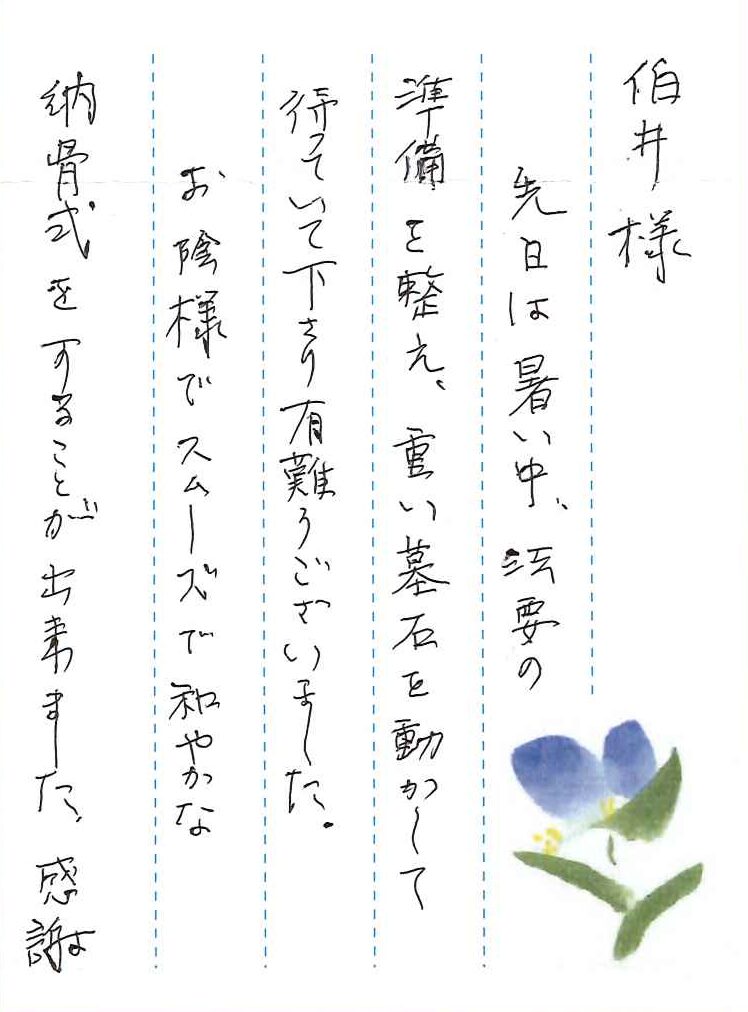先日は暑い中、法要の準備を整え、重い墓石を動かして待っていて下さり有難うございました。