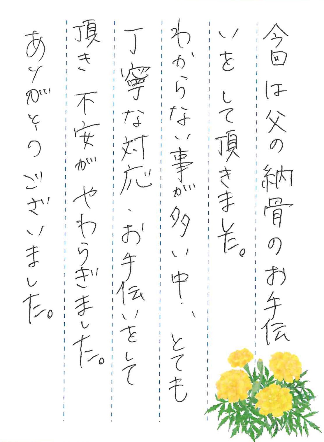 今回は父の納骨のお手伝いをして頂きました。
