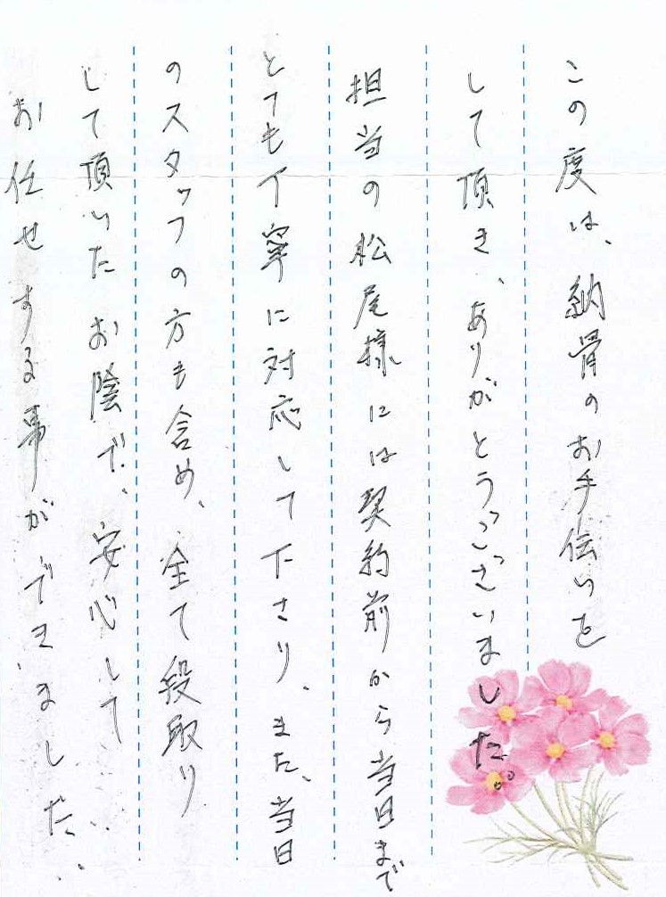この度は、納骨のお手伝いをして頂き、ありがとうございました。