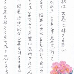 鵯越墓園でお墓を建てさせていただきました(水野様)
