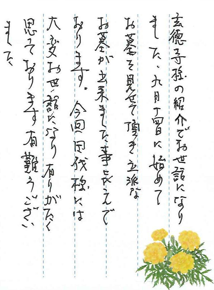 九月十四日に始めてお墓を見せて頂き、立派なお墓が出来ました事、㐂んでおります。