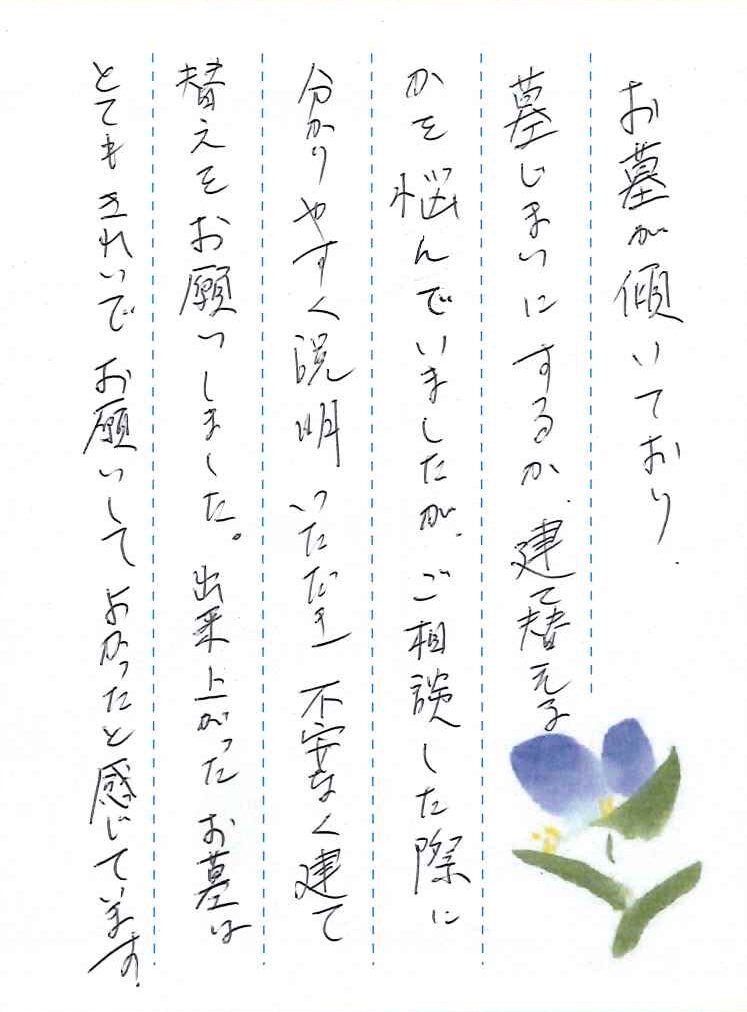 出来上がったお墓はとてもきれいで、お願いしてよかったと感じています。
