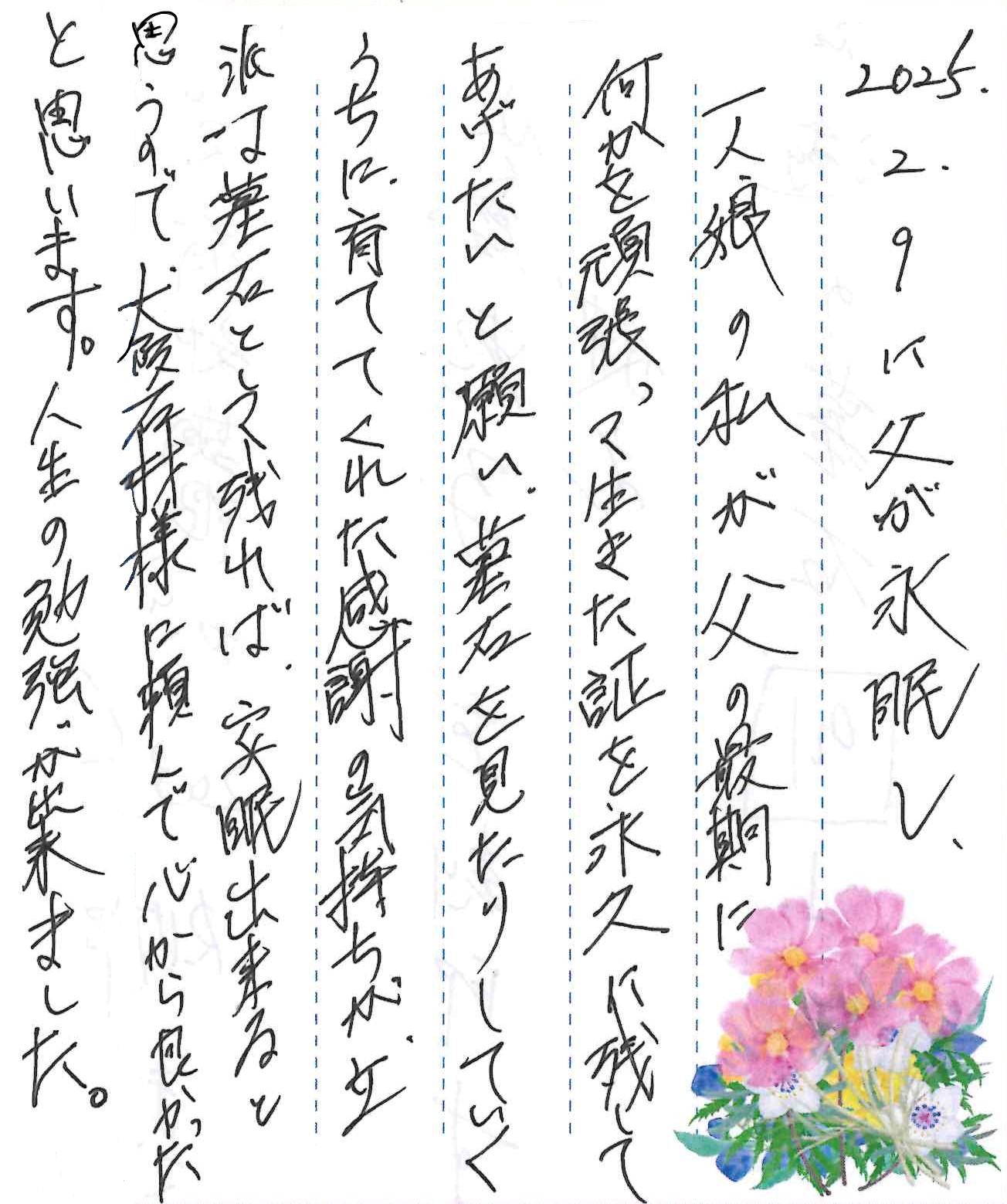 2025.2.9に父が永眠し、一人娘の私が父の最期に何かを頑張って生きた証を永久に