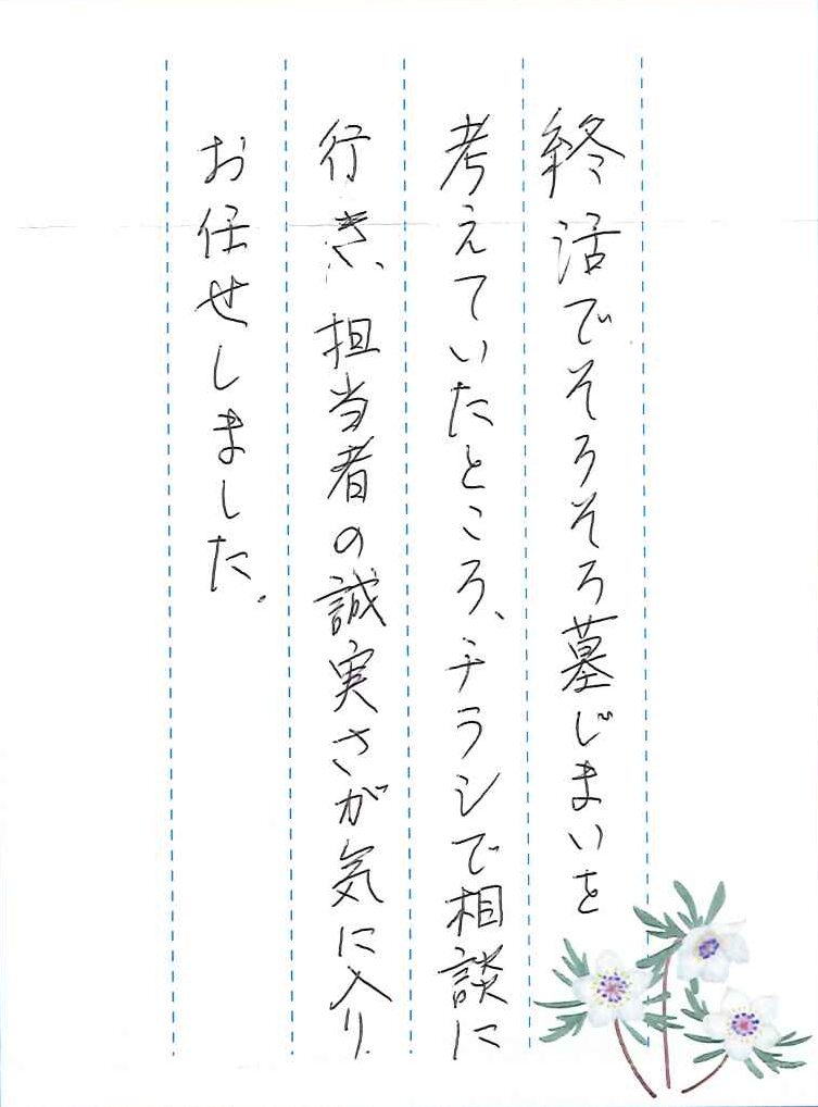 終活でそろそろ墓じまいを考えていたところ、チラシで相談に行き、