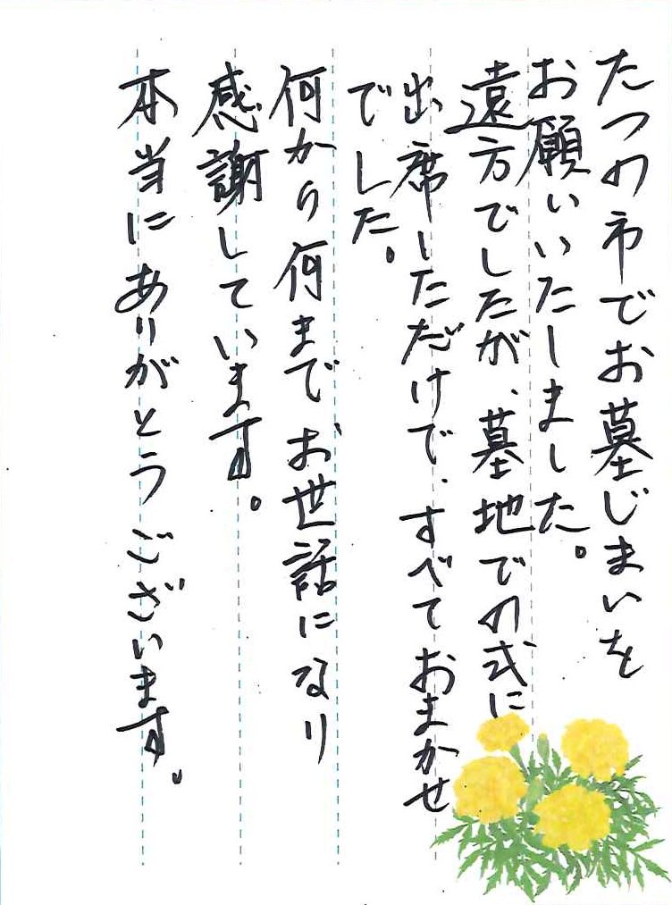 たつの市でお墓じまいをお願いいたしました。