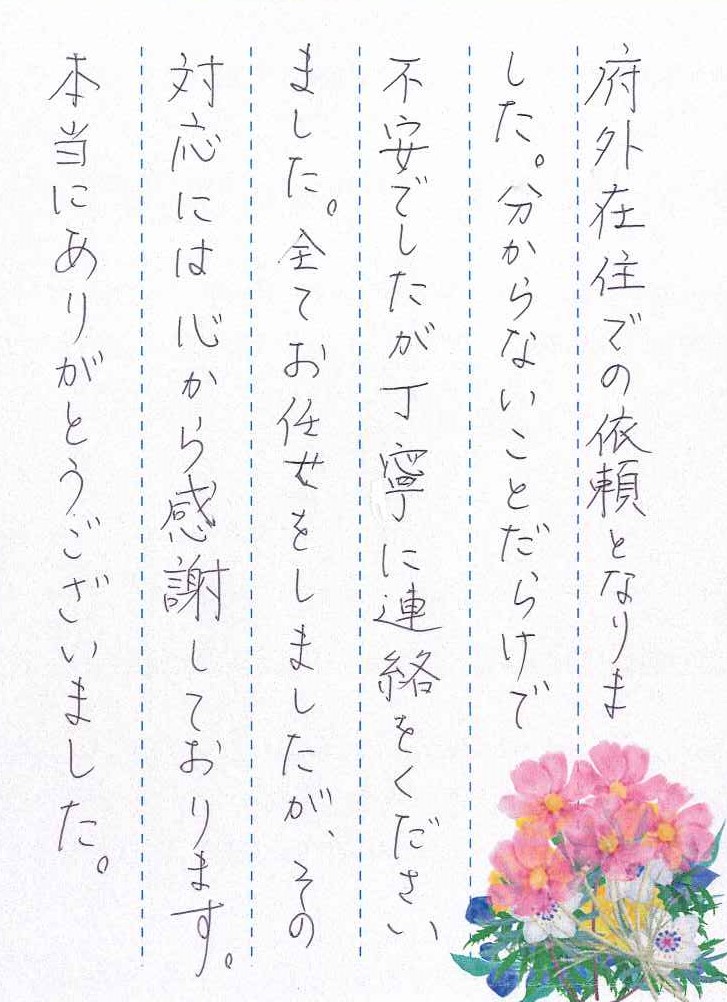 全てお任せをしましたが、その対応には心から感謝しております。