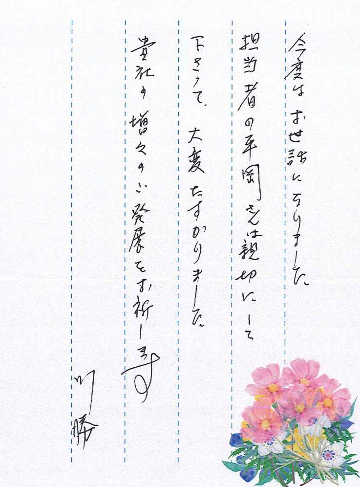 担当者の平岡さんは親切にして下さって、大変たすかりました。