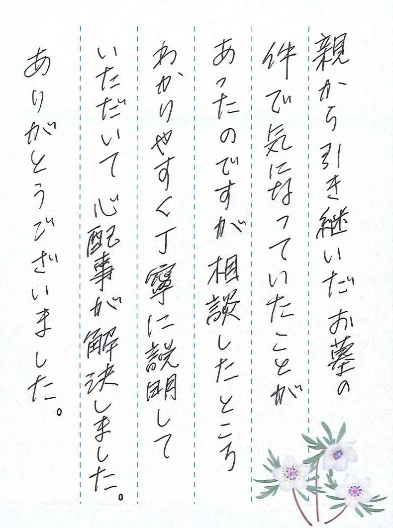 相談したところわかりやすく丁寧に説明していただいて、心配事が解決しました。