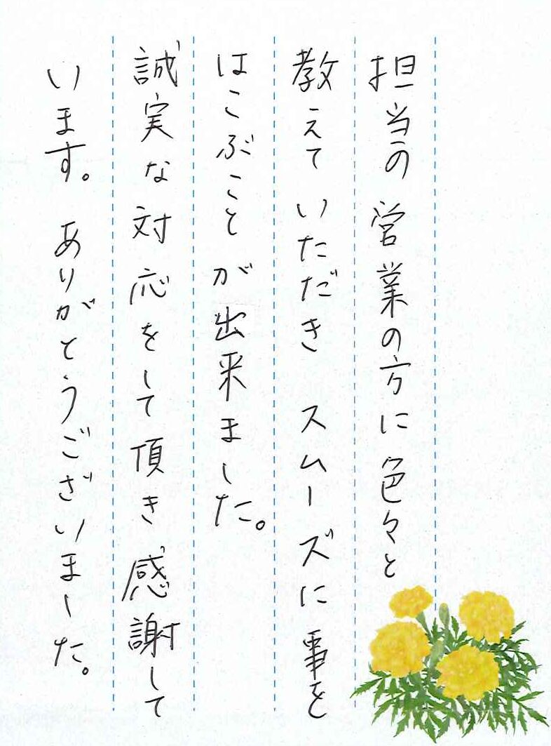 誠実な対応をして頂き感謝しています。ありがとうございました。